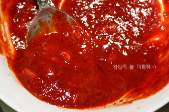양념장은 고추장 한숟가락, 고춧가루 한숟가락, 다진 마늘,다진 파