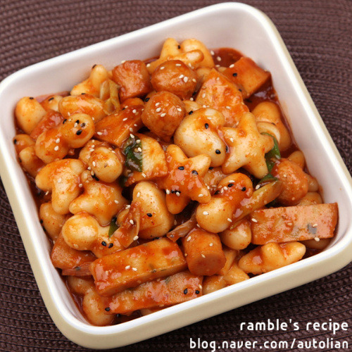 - 떡볶이 양념 : 물400ml, 고추장3, 다진마늘1, 설탕1, 물엿1