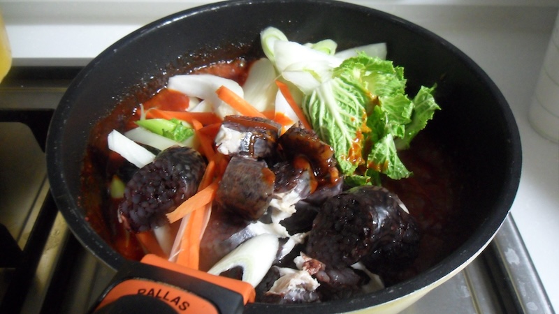 ㉣ 양념에 순대와 채소를 넣고 살짝 버무려주듯 익혀낸다.